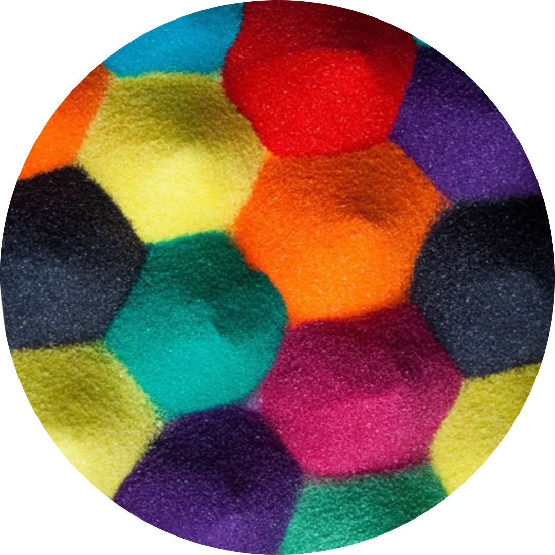 Naturalny piasek kwarcowy, mączka kwarcowa, tlenek glinu, kolorowy piasek kwarcowy o optymalnej wilgotności i wyraźnym frakcjonowaniu.
